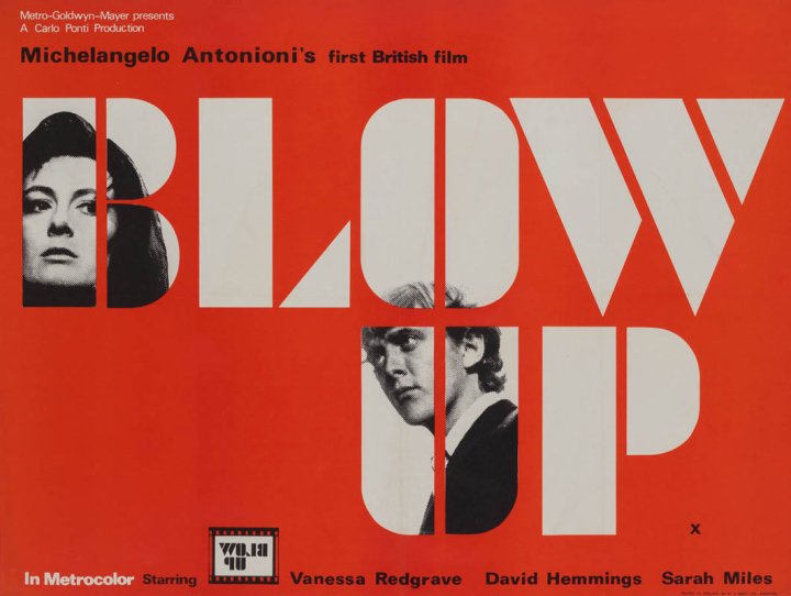 By now, it’s evident that co-writer/director Michelangelo Antonioni is commenting on the vacuousness of Swinging London. But then he introduces a mystery: Thomas secretly follows and takes pics of a young woman (Vanessa Redgrave) and an older man (Ronan O’Casey) walking and kissing in Maryon Park. The woman, Jane, is upset and demands Thomas give her the film. He refuses. She later visits his studio and tries to seduce him for the pictures, but he tricks her and gives her the wrong roll. After she leaves, Thomas develops the photographs, and what follows is an amazing sequence in which Thomas blows up the images and sees what looks like the figure of a man hiding in the bushes… with a gun in his hand. Did he unexpectedly save the lives of the couple?