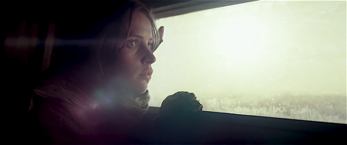 Take a look at the first teaser for Rogue One, the prequel to George Lucas’ Star Wars (1977, later retitled A New Hope), and one thing becomes abundantly clear: This film will break free from the conventions of the original 1977-1983 trilogy and their 2015 sequel Star Wars: The Force Awakens. The tone is darker, the cinematography artsier, the performances dead serious. We meet a new heroine, convict Jyn Erso (Felicity Jones), and immediately understand she’s an outsider to the Skywalker saga, one of countless bystanders – a criminal, in fact – who doesn’t have an overt stake in the battle between the Empire and the Rebel Alliance: When she says “Isn’t this a rebellion? I rebel,” she’s cynically mocking politics, not adhering to them. And yet we know fight for the rebellion she will, as we can see in the teaser’s final shot of Jyn disguised in Imperial uniform, intently looking at the camera as Forest Whitaker’s off-screen voice solemnly asks “What will you… become?”