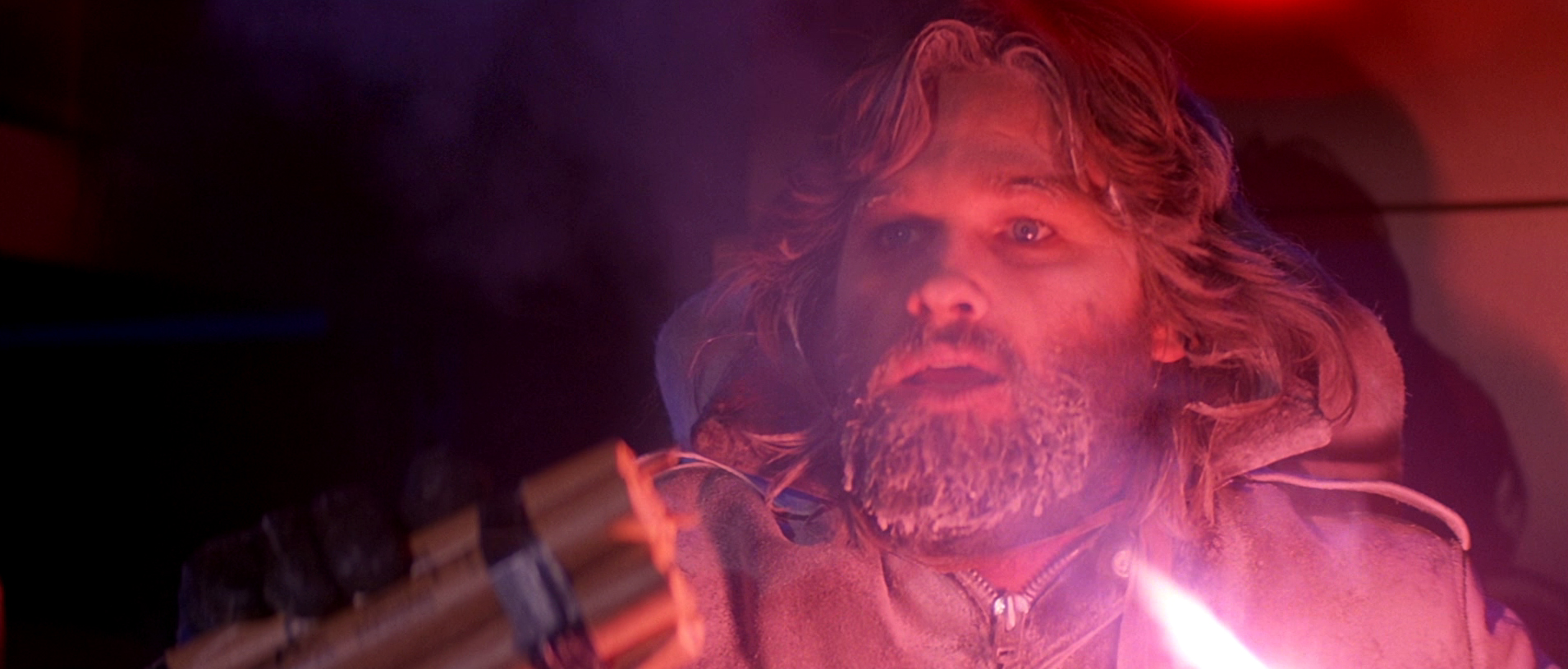 The Thing opens with a shot of a spaceship careening towards Earth before the movie’s title appears on screen (the graphic is exactly the same as in the original, words ripping through the screen in incandescent fury). Carpenter keeps true to the Antarctica angle from Campbell’s story, but adds a rather intriguing prelude: A helicopter piloted by two Norwegians chases a Siberian Husky as it runs across the snow. The men are trying to kill the canine… but why? As the dog finds solace in the American research facility, the eventual surprise that the dog is in fact one of the incarnations of the monster is both shocking and unexpected.